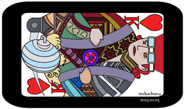 Traditionally, the King of Hearts is shown with a sword over his head, giving him the nickname "suicide king." Interestingly, this is the only king with no moustache.